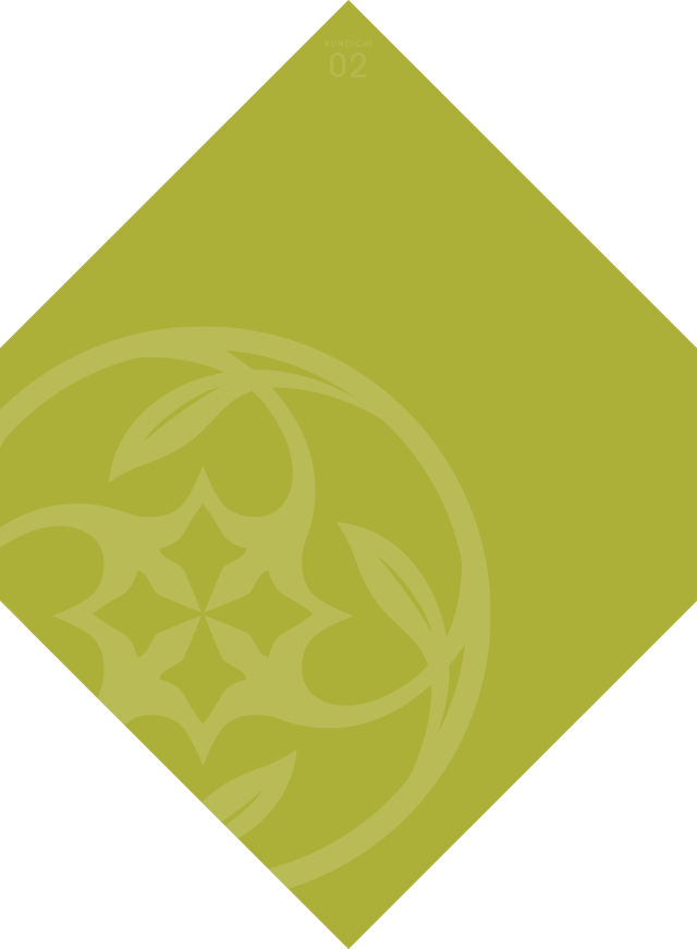 厳しい任務の中でも、持ち前の愛らしさを発揮して自然と周囲を和ませるチームのムードメーカー。温和で心優しく控えめな性格の持ち主だが反面、自分に自信が持てないらしく、時には自らが召喚したサムライにさえ本気で物怖じしてしまうこともあるほど。また戦いが好きでなく、クノイチとしての過酷な日々に実はストレスを感じているようで、ふとした瞬間にぽつりと黒い言葉を漏らすことも。